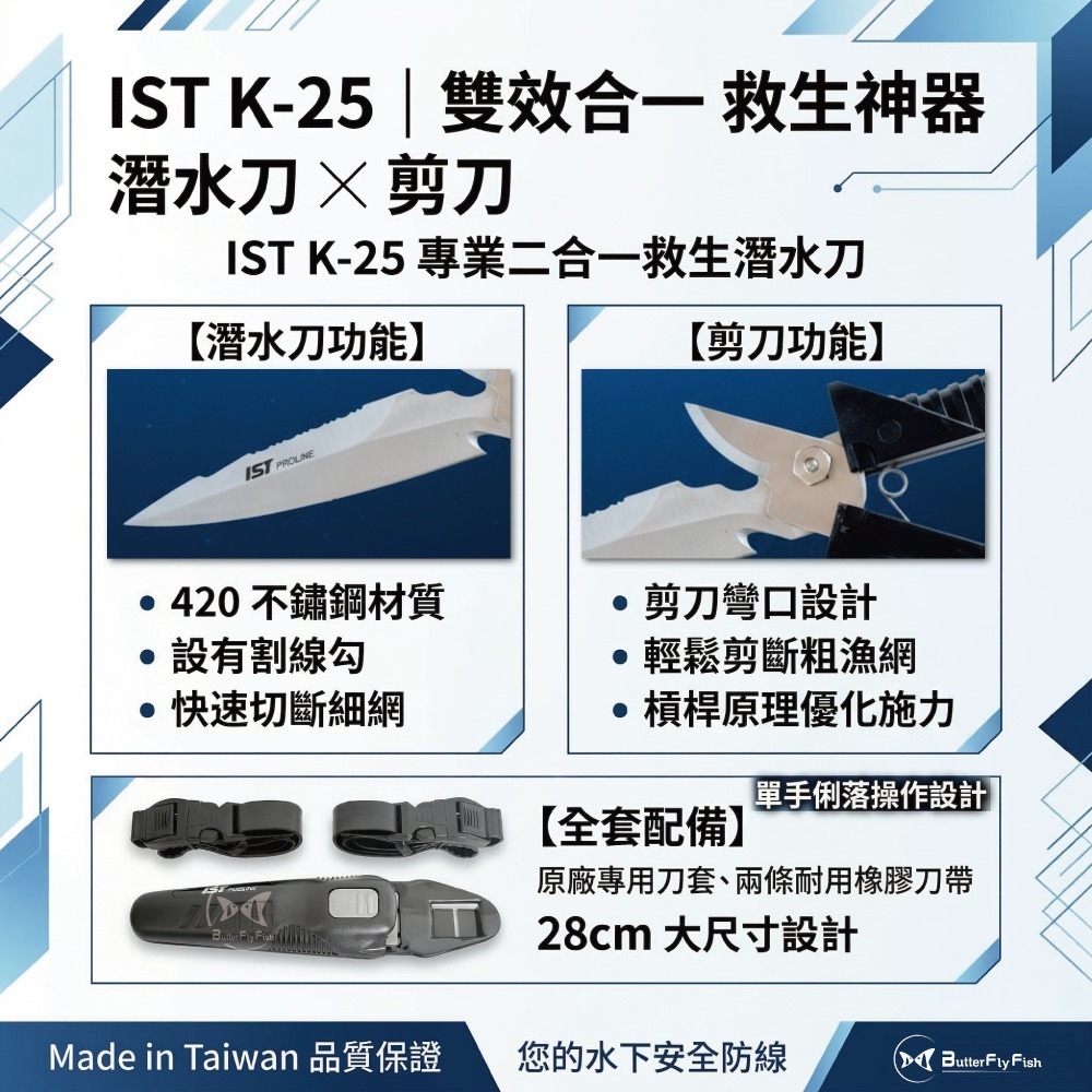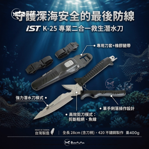 悠游深海,守護安全:IST K-25 專業二合一救生潛水刀