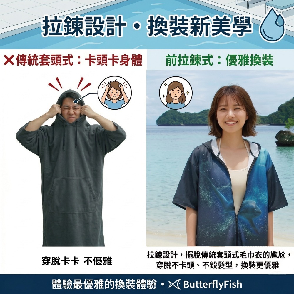 ✅ 拉鍊開襟,換裝不卡卡